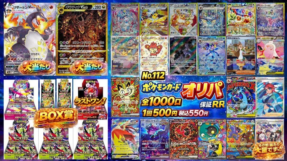 No.112 ポケモンカードオリパ 500円 全1000口 RR保証 トップ50倍以上 BOX賞7口 ラストワンあり